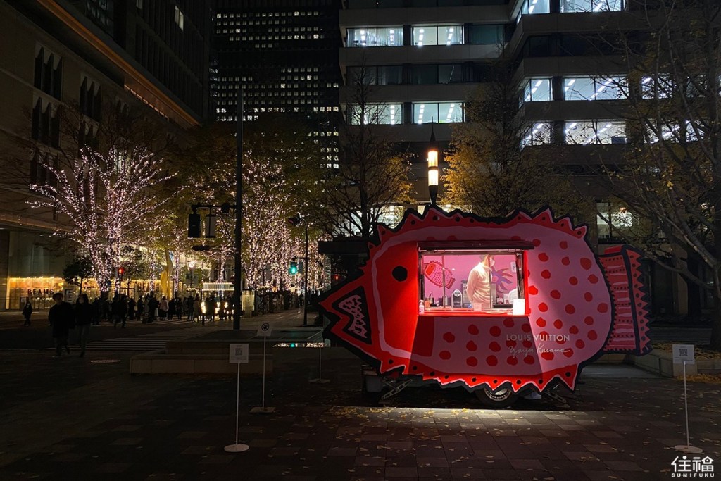 12月的東京往年都有充滿聖誕氣氛的點燈,今年比較特別的非屬法國時尚品牌路易威登Louis Vuitton和當代藝術家草間彌生的合作展覽,整個東京都是這次展覽的場地,以經典的圓點圖案點綴在東京各地。