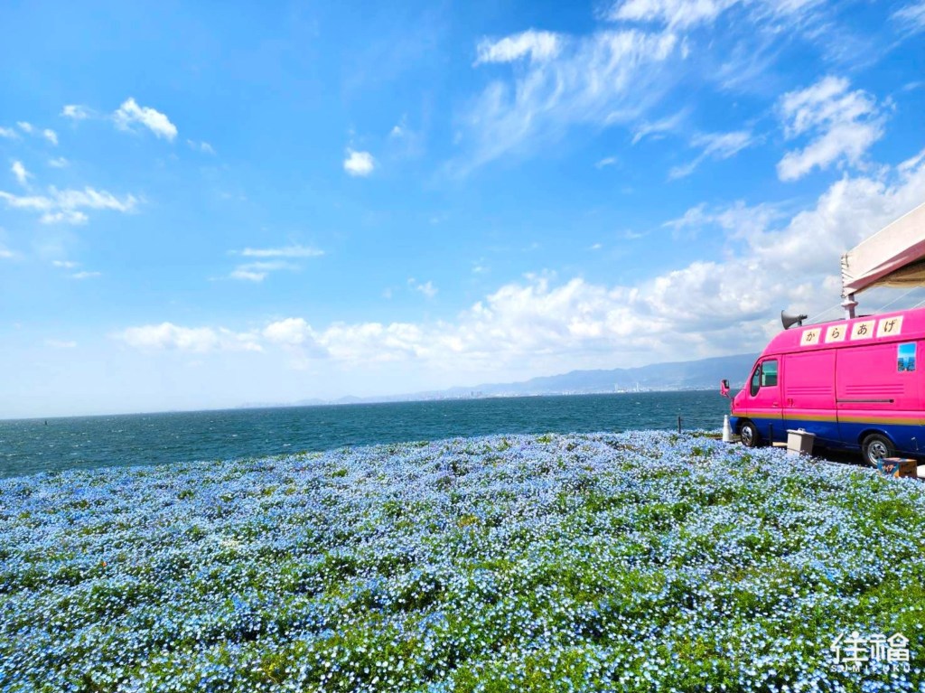 當春天來臨,大阪舞洲海濱公園的粉蝶花季(ネモフィラ)也隨之到來。