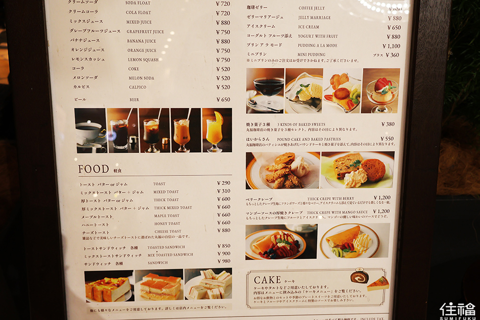 因為大受歡迎而在超市長期販售的丸福布丁,我必須真心推薦大家親到店內品嚐一次丸福布丁,店內不僅提供可愛的擺盤,更會淋上甜而不膩的焦糖在布丁上方,並以少量當季水果點綴,你可以搭配擠在盤邊的鮮奶油,比起單調購買市售布丁,在店裡吃更能吃出布丁的層次,吃一口布丁,再喝一口超人氣招牌丸福黑咖啡,味覺上的雙重享受,這樣的下午茶真的是太讚了⋯⋯!