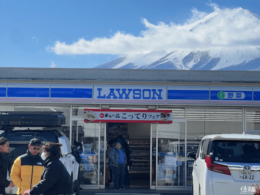 It is also worth going into the Lawson itself, not only to top up on some conbini snacks, but to see some of the Fuji-themed souvenirs on offer. From Fuji-themed biscuits to Fuji-inspired alcohol, to even Fuji-shaped plushies, there is a unique range of goods to choose from.