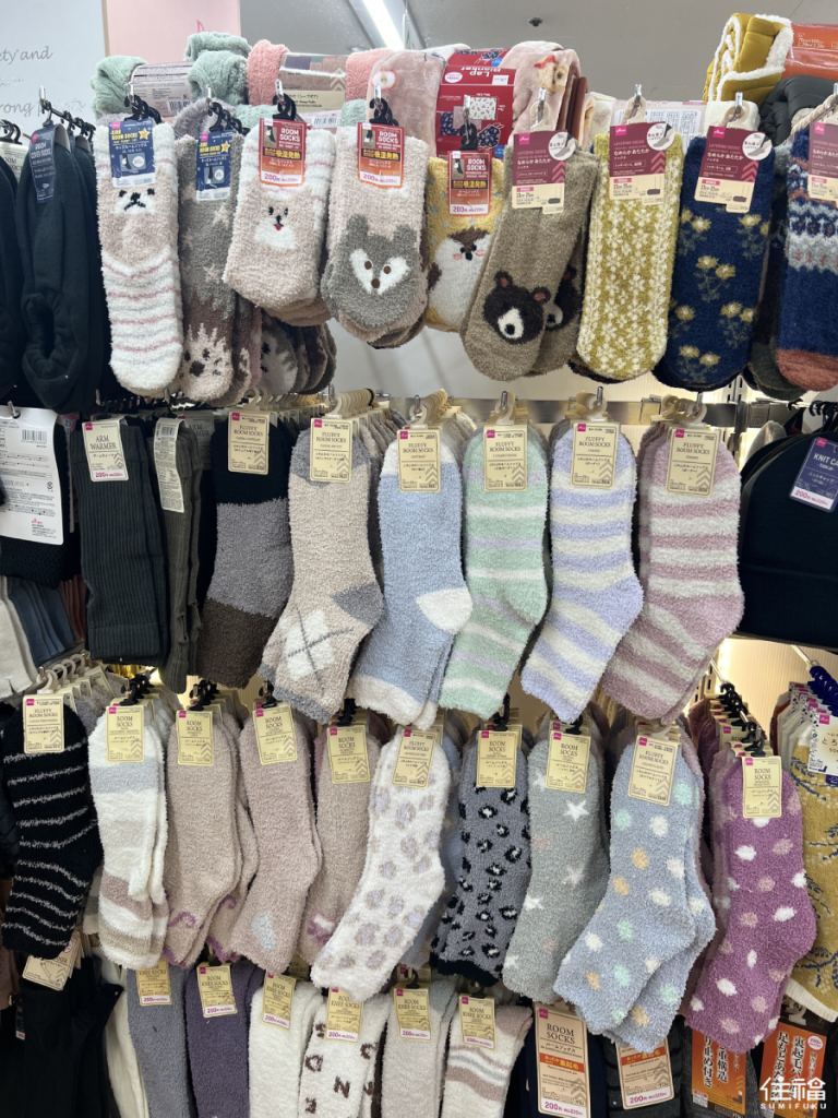 Fluffy socks are another winter must-have. They are not only great to wear around the house but can be worn under heavy boots to keep your feet nice and warm when outdoors. This DAISO had a good choice of both long and short socks with different designs.