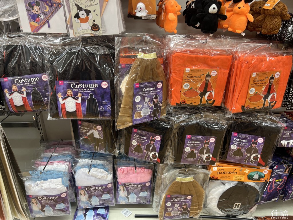 Surprisingly, there are some costumes as well. Although there is a limited choice and they are not as good-quality as say the ones you find at Don Quijote, they are good for those looking for something last minute or something they don’t mind ruining. Most of the costumes are for kids, with the exception of a vampire cloak for adults, with all of them ranging from ¥200 to ¥500.