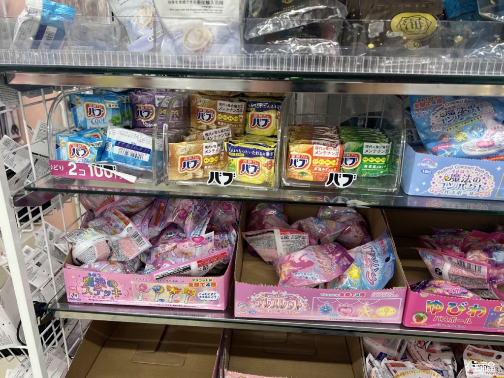 At DAISO, there is a solid selection to choose from. The バブ (bub) bath salts are very popular given that they help to enhance the warmth of the bath water as well as come in a variety of pleasant scents. Many people also love the Bath Théiére salts which are sold in individual packs and come in seven different scents.