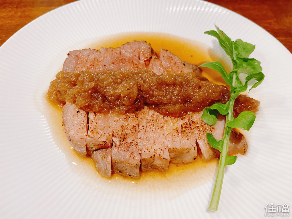 最令人印象深刻的小盤料理,非「炙烤叉燒佐洋蔥醬」(
