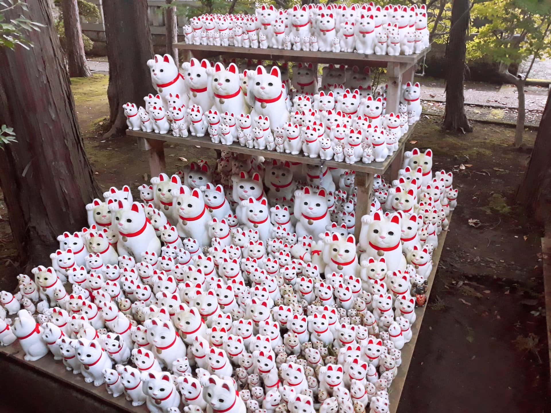 傳說中,在江戶時代的時候,貓寺廟內有養一隻貓。有一天,譜代大名彦根藩・井伊直孝經過豪德寺,寺裡的貓向他招手請他進到寺裡,彦根藩・井伊直孝走了進去,然後外面就開始下起雷爆雨,彦根藩・井伊直孝為了表示感謝,就贈送豪德寺農田與土地,招財貓才因此在這裡起源~彦根藩・井伊直孝去世後,也被埋葬於生前幫助過他的豪德寺內。