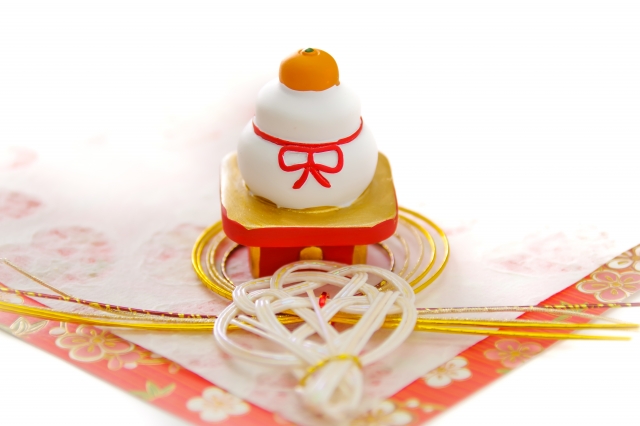 鏡餅是日本新年時,用來迎年神的年糕,祈求新的一年能好運及順利。鏡餅名稱的由來與日本祭神時所使用的古青銅製圓形鏡子有關,形取自三神器之一「八咫鏡」的圓。另外圓形也有祈求家庭圓滿的意思在,最上面會放上一顆橙(橘)子,因日本發音類似「世代」,有著世世代代繁盛昌隆的含義在。一般建議在12月28日擺上是最適當的,除了八在傳統上是較好的數字外,29日的「九」與「苦」同音,普遍認為不吉利,而30日是農曆中的最後一日,31日則為一年的最後一天,若在此時擺的話,會變成「一夜飾」或所謂的「一夜餅」,不但讓人覺得欠缺誠意,還會聯想到葬禮的擺飾,所以一般都在28日開始供奉鏡餅。