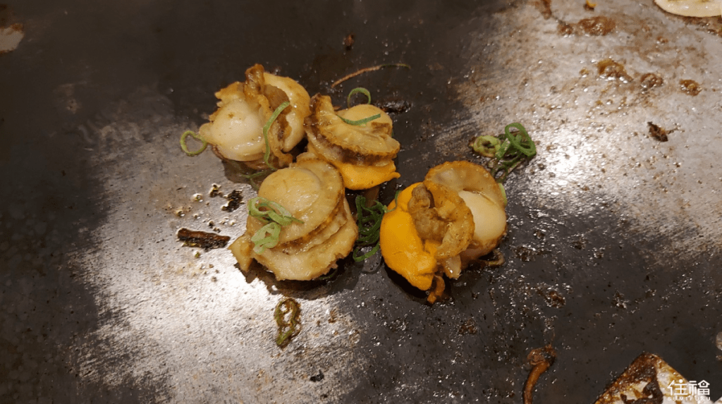 如果不是坐在吧台的位置的話,就會是服務人員將料理送到大家桌上的鐵板,進行最後一個步驟的烹調,全程都不用自己動手,尊榮待遇。(笑)