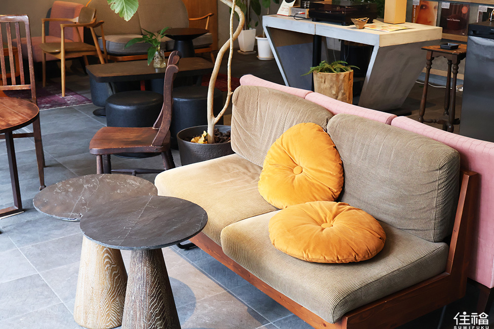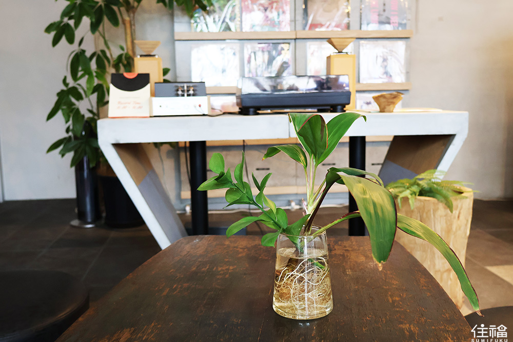 店內總共有兩層,從一樓木質桌椅到二樓 Lounge,室內裝飾著綠意盎然的植物牆、懷舊復古唱片機,彷彿走進了舒適的個人辦公室,店內提供免費 Wi‑Fi 與電源插座,適合旅人工作、閱讀,或是旅行中喝頓放鬆的下午茶,如果你是數位遊牧,或是文字工作者、這間咖啡廳適合待上整天。