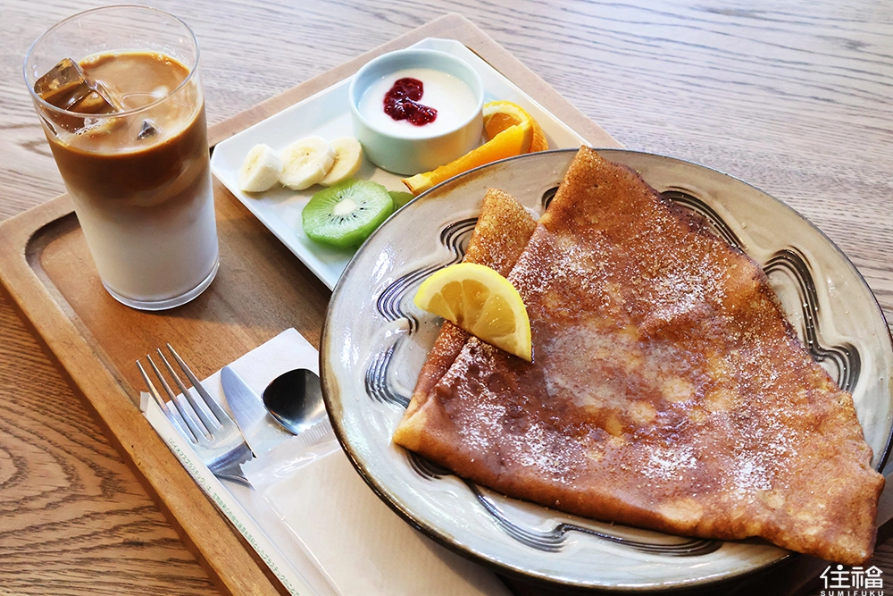 當天的法式可麗餅,讓我印象深刻,Q 彈柔軟,撒上糖粉與少量糖漿,味道簡單,卻百吃不膩,你可以試著搭配一旁的水果優格,可以吃到不同的清爽口感。