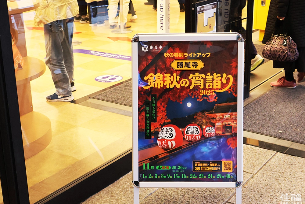 我是在當天下午約四點抵達勝尾寺,原先就安排要一路待到夜間點燈。提醒大家,勝尾寺並非每天都營業至晚間,夜間點燈活動是限定期間,所以行前務必先確認官方公告。雖然當天正好是三連休的最後一天,但人潮其實沒有想像中擁擠,逛起來相當舒服。