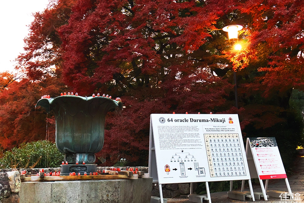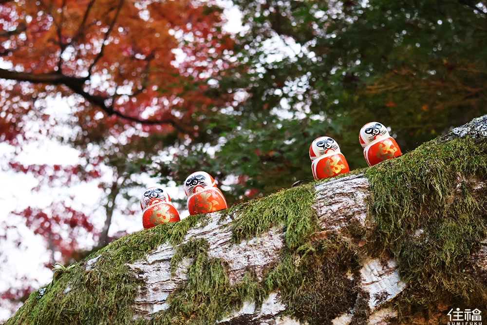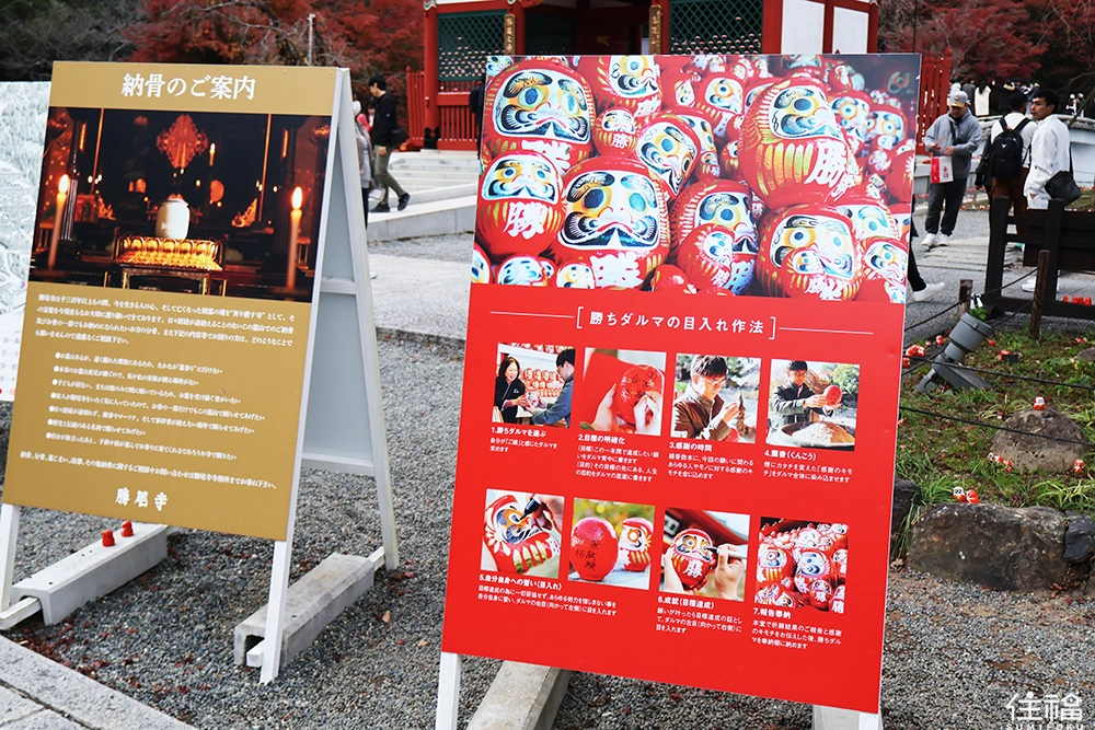 一踏入寺院,就能看到關於勝運達摩的介紹牌,以及散落各個角落的小達摩(不倒翁),完全是可愛重擊。這些達摩幾乎「無所不在」,像在和旅人玩躲貓貓一樣,走到哪都會驚喜發現達摩身影。