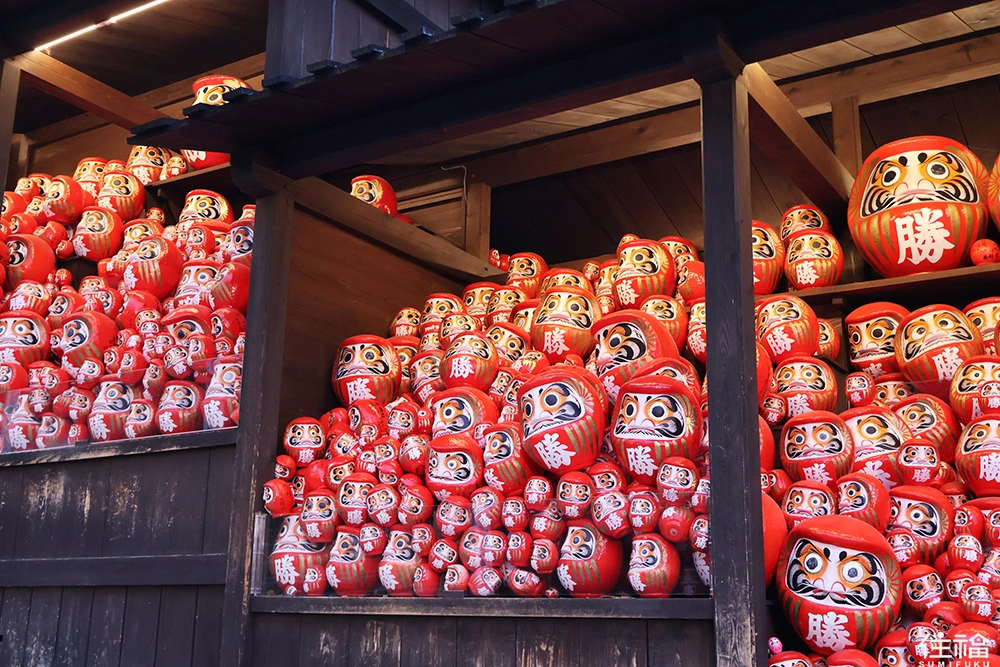 當願望真的實現後,大家會把達摩奉納到專屬的奉納棚,而這裡也成了大家最喜歡拍照的熱點。奉納棚上滿載著大小達摩,每一尊都代表「已經實現的願望」。