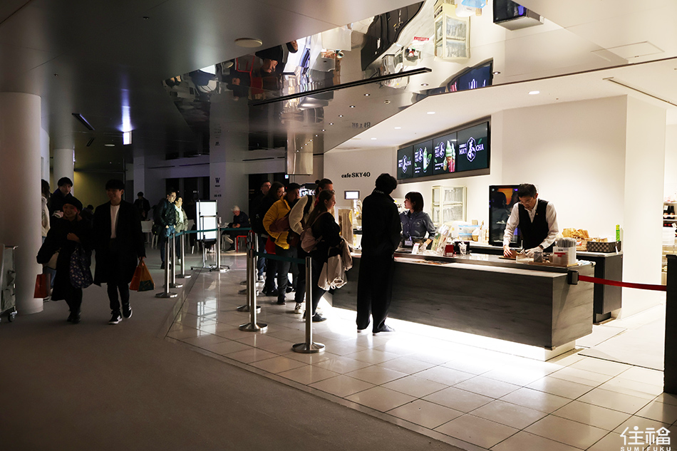 梅田藍天大廈有 40 層樓,內有咖啡廳、美食街,電影院、LOUNGE,很適合情侶們用餐後,再到空中庭園享受一下大阪夜景。
