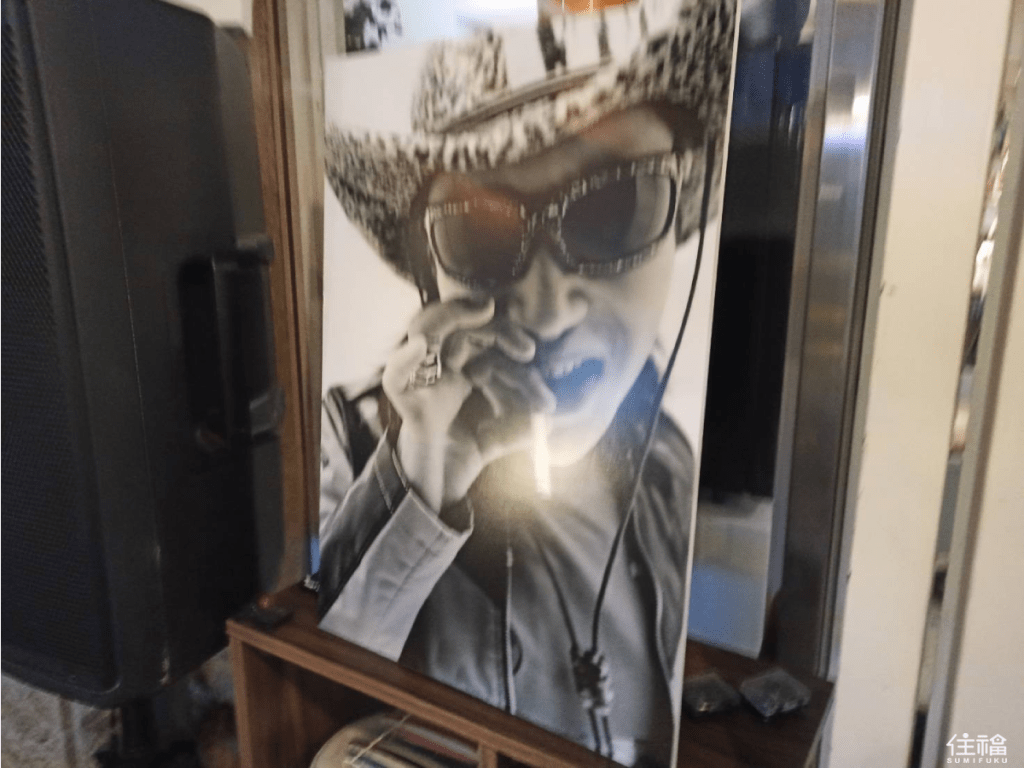 此外,其實在進店前我們就在外面發現這個小看板,當時還有點疑惑為什麼X-JAPAN的HIDE照片會出現在這裡。
