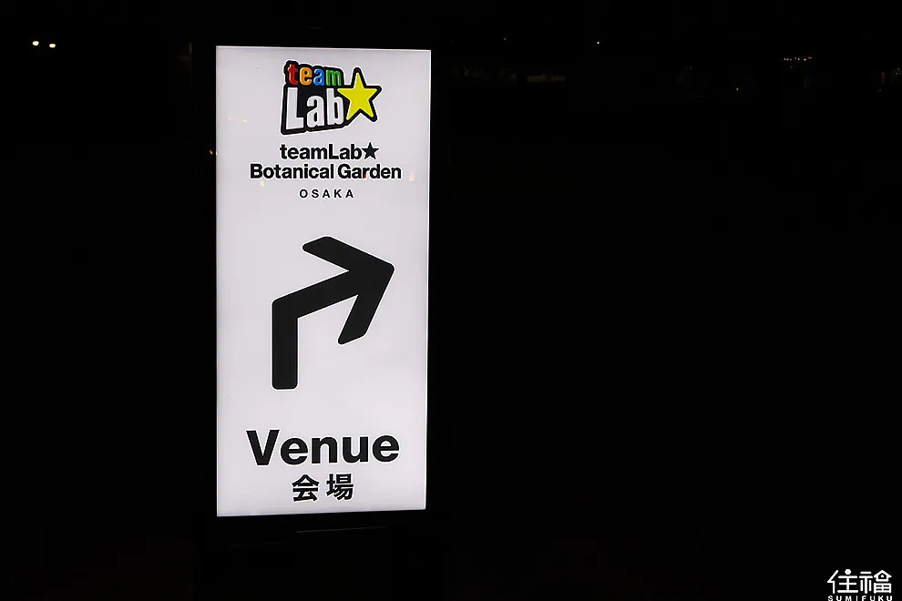 園內 teamLab 活動標示都相當明確,跟著標示走,不迷路,很快就能抵達。由於每個時段入場的人數有上限,因此需要上網預約票券,接著請隨預約時間抵達,入場前會集合這個購票時間的參觀者,同時也建議大家提前下載 TeamLab 的 APP,有一些裝置會需要透過手機才能進行互動。