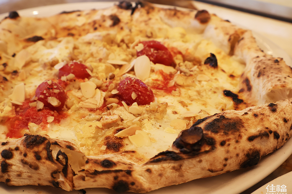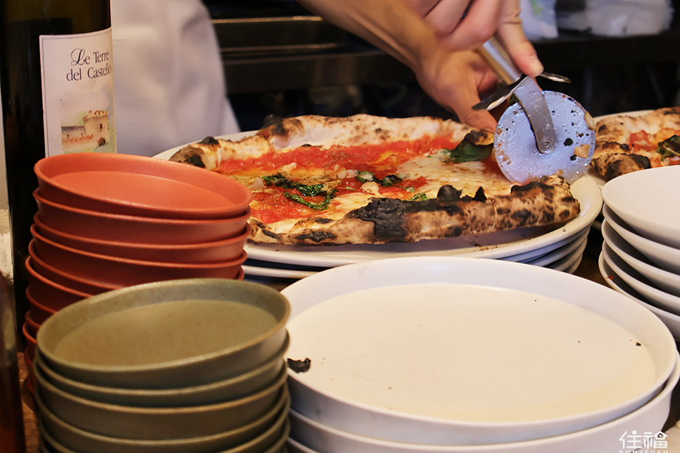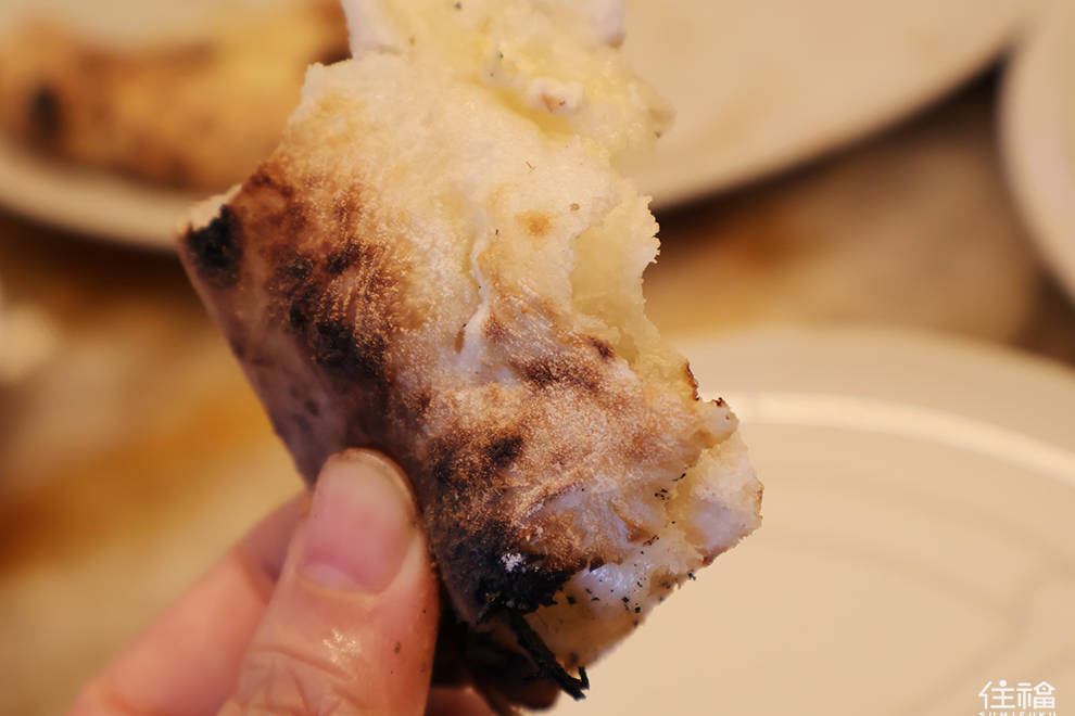披薩上桌時已經幫你切好等分,你只管負責專心品嚐披薩,飽餐一頓,另外,不得不推他們家職人親手捏製而成的披薩皮!吃一口絕對能感受麵團發酵的魅力,窯烤後超Q彈超好吃,即使是放冷也還是有那樣的嚼勁在,哪怕不愛吃披薩邊的人,也能感受到麵團的真實力!