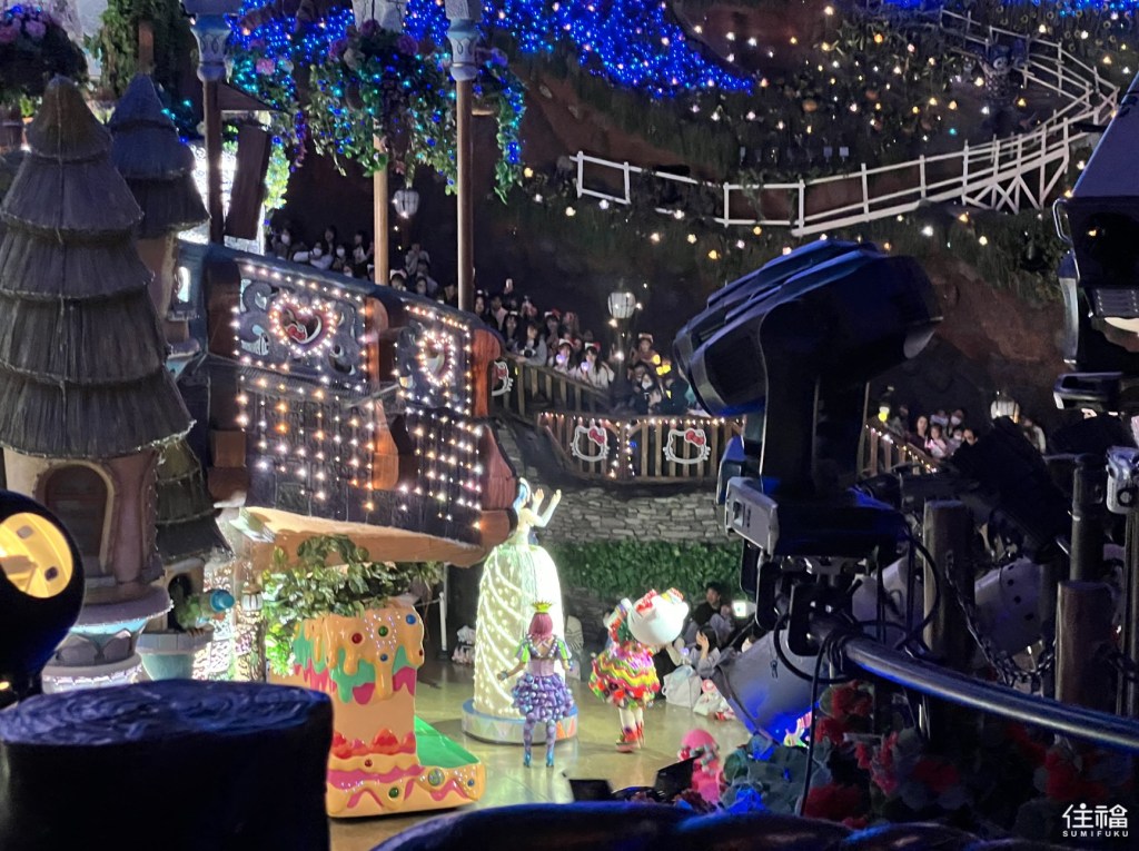 來到三麗鷗樂園,必看的絕對是三麗鷗角色的表演跟遊行拉!場地位在樂園一樓的智慧樹舞台周邊,由於是360度的舞台空間設計,所以不管在一樓或二樓的哪個位置,都能夠零死角的觀看到表演。