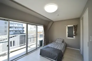 Spacious and well-lit apartment with a bright balcony area. Features a modern open kitchen equipped with a refrigerator, double-burner gas/IH stove, and microwave. The neighborhood offers easy access to daily essentials, with supermarkets, convenience stores, shopping areas, and major train stations all within a 5-minute walk.