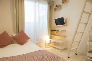 天井が高くて開放感が抜群のロフト付きアパート!コンパクトですが、必要なアイテムが全て揃っています。ハシゴの下部は日常の生活機能を満足させ、ロフト部は「非日常」のくつろぎスペースとしてお楽しみいただけます。長期滞在の際、収納スペースとしての利用もOK!三つのテーマからお選びいただけます。
