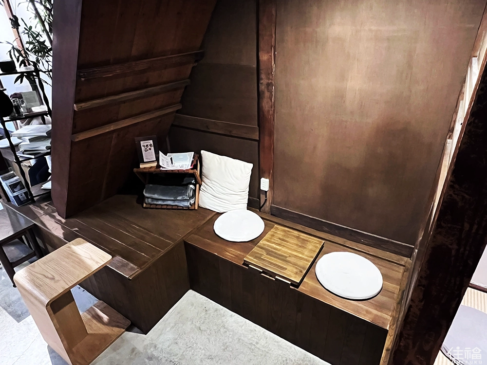 當天造訪時間是平日午後,推開木門走進店內,意外發現裡頭有些熱鬧。即使是平日,店內座席幾乎已滿,能順利找到位置坐下,反而讓人覺得有點幸運。店內基本上採每人低消制(至少一杯飲品,或一份餐點或蛋糕)。點餐後,需要先脫鞋再入內,主要是因為店內設有塌塌米的日式空間設計,此外,整體空間也被巧妙地劃分為三種風格,各有特色。