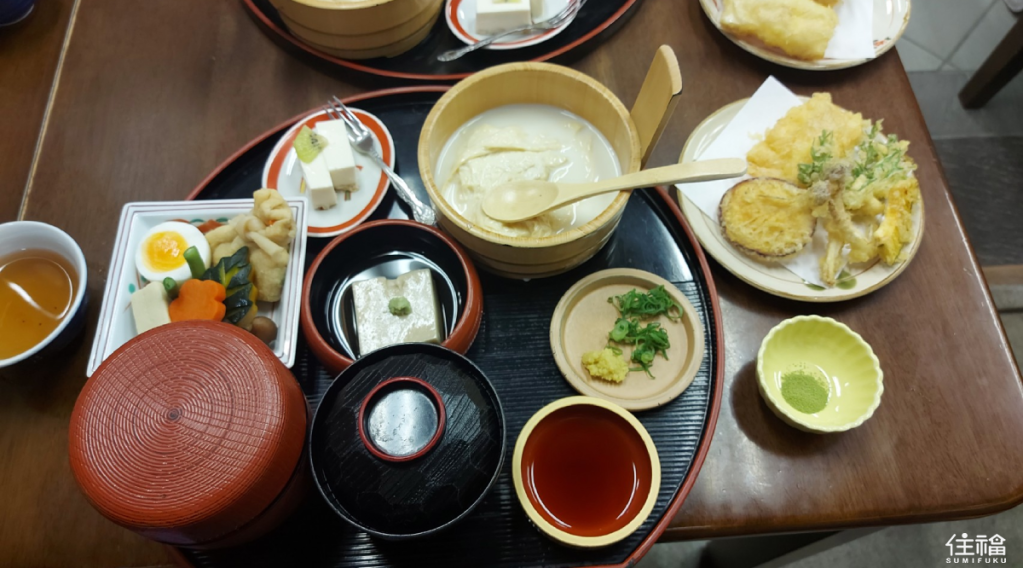 我與旅伴點的是〔門前+蔬菜天婦羅〕套餐。這邊提醒下各位,這個套餐是全素的唷,並沒有任何肉類,如果無肉不歡的旅人請避開。