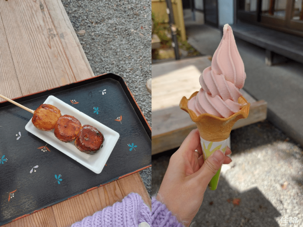 最後推薦給各位兩樣,在下山途中可以買的土產,當地人以赤紫蘇製作的漬物(しば漬け)以及柚子味噌。特別是這個味噌,它不是用來煮湯的那種味噌,而是偏向沾醬或是醃料,用柚子味噌搭配海鮮,滋味絕妙!