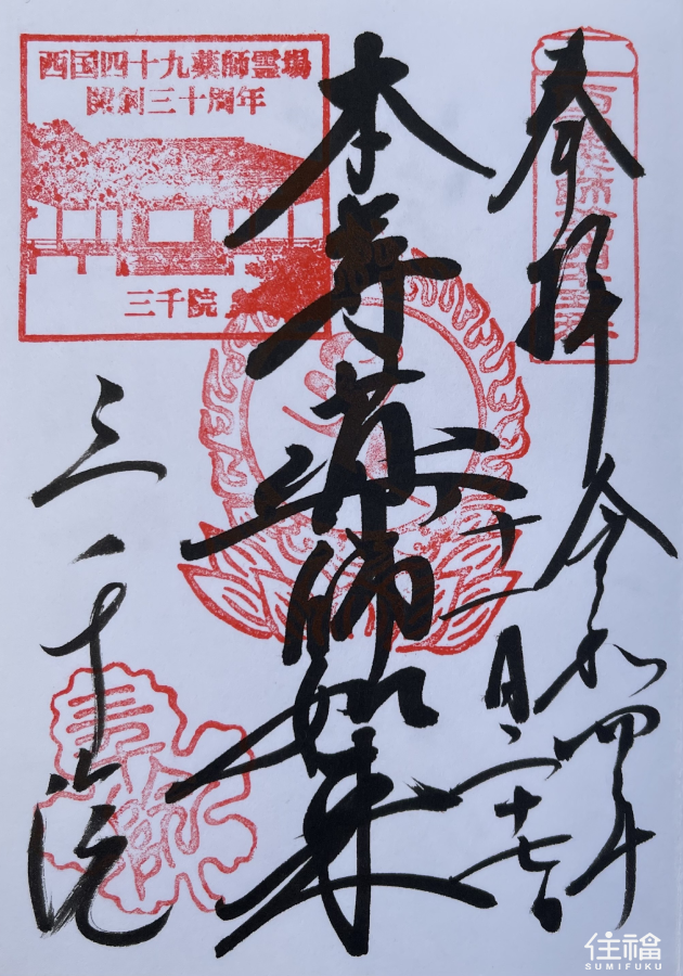 這邊提醒有蒐集御朱印喜好的旅人們,大原三千院內總共有三種御朱印,兩處御朱印所,第一個就在客殿內,是本尊藥師如來的御朱印,筆者每次看著院方人員行雲流水的寫完一幅御朱印總是嘆為觀止,怎麼這麼一氣呵成,都不會寫錯的呀?