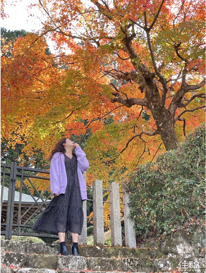 離開三千院後回到院前參道,我們向右往勝林院方向走,途中居然發現這一處沒什麼人拍照的角落,美得不可方物,讓我們趕緊停下來取景。