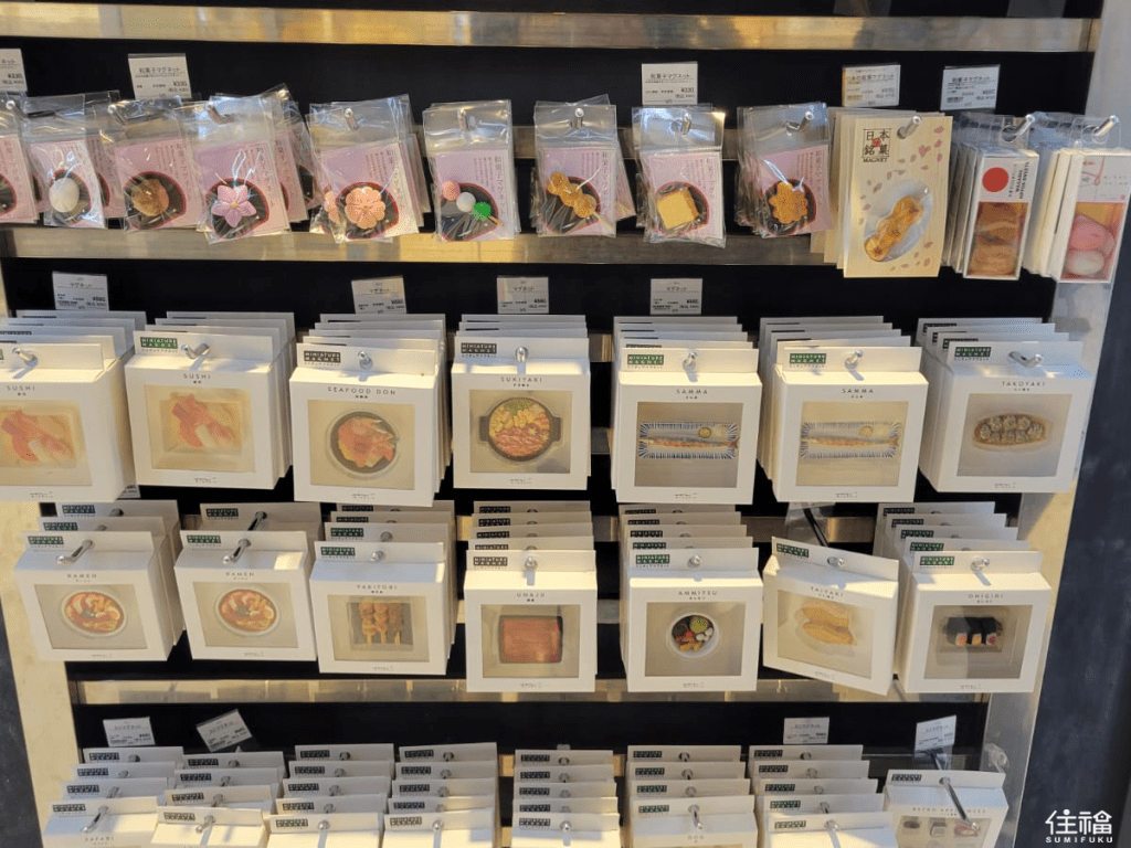 These miniature food magnets showcase Japanese attention to detail at its most charming. The sushi collection features individual pieces representing salmon, tuna, shrimp, and egg with realistic textures. Beyond sushi, you’ll find ramen bowls, onigiri rice balls, takoyaki, and traditional sweets. Basic collections start at ¥363, while premium versions (¥700-¥1,000) feature enhanced detail. Their lightweight, flat profile makes them perfect for travelers.