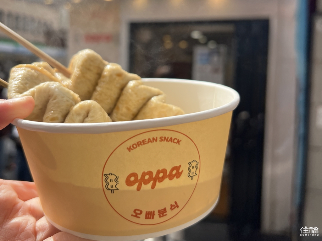 在 oppa bunsik,你可以品嚐到釜山魚板、韓式炸雞塊等傳統韓國小吃,以及結合起司的創意料理,雖然人潮眾多,但因為是直接用購票機結帳,所以不用等太久就可以享受到美味的韓式小吃拉!