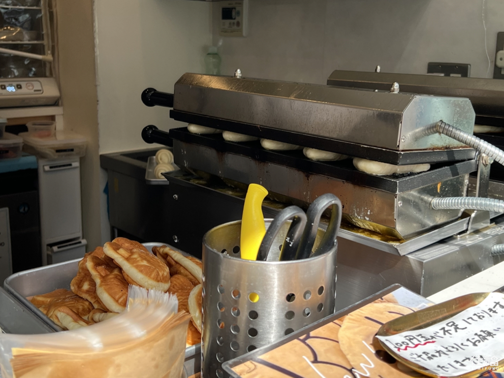 等待的時間看著現點現做的鯛魚燒在烤盤上烤得吱吱作響,令人口水直流。