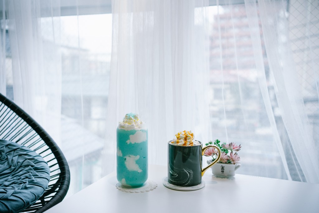 パステルカラーのケーキにスムージー。青空に雲のような模様のヨーグルトスムージーなど、どれもZ世代の「かわいい」を詰め込んだメニューばかり。