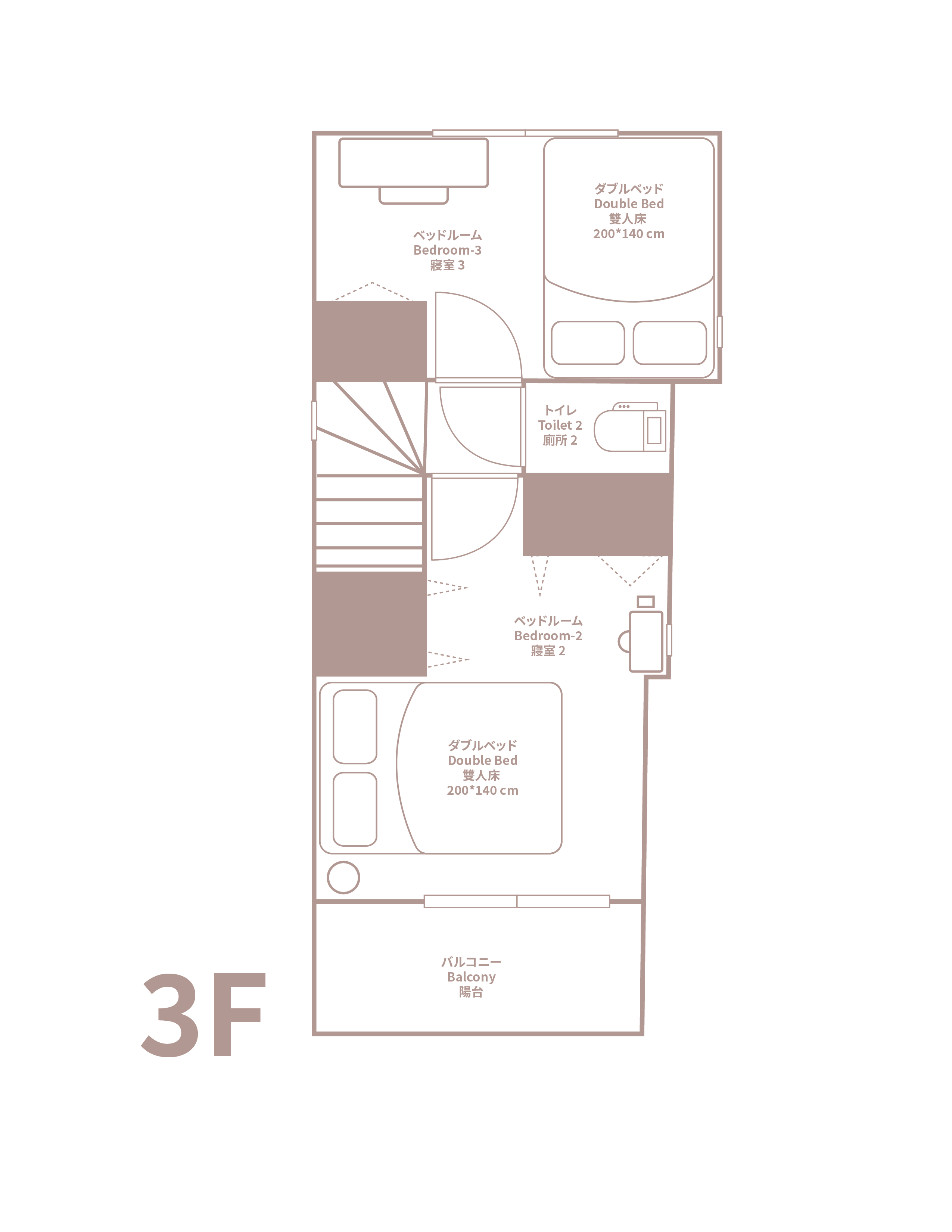 - 寢室 3 間 (分別位於1樓和3樓)