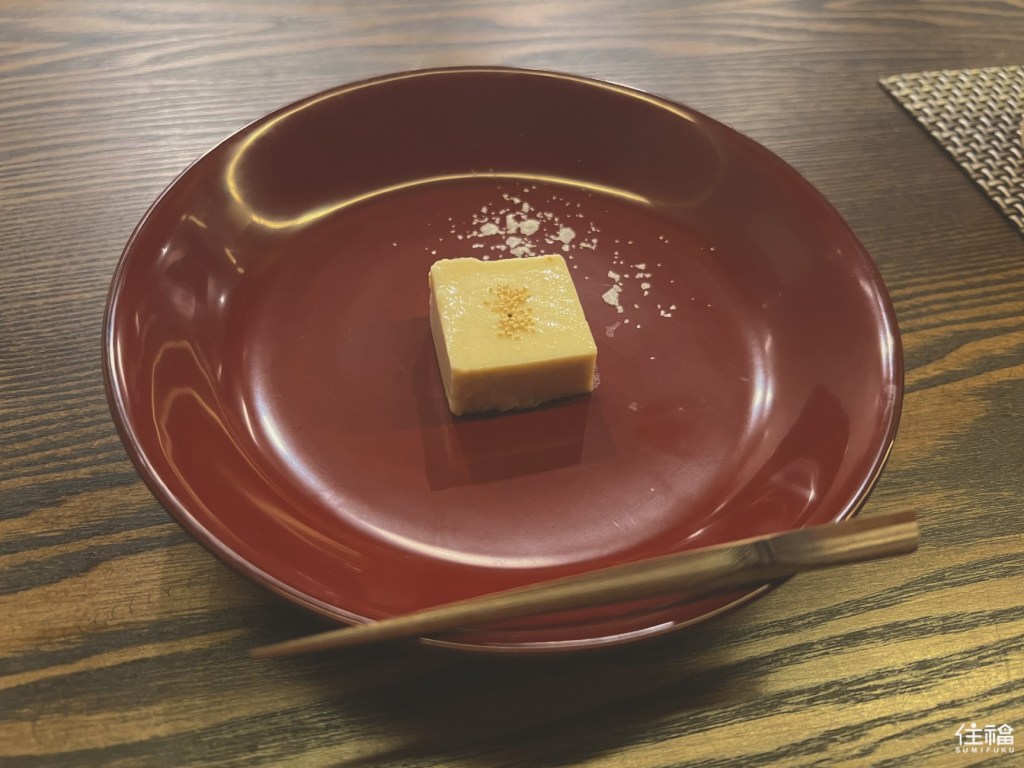 The first course was “Rikyu Tofu,” a type of sesame tofu with a rich aroma and light taste. It was served beautifully, decorated with salt on top.