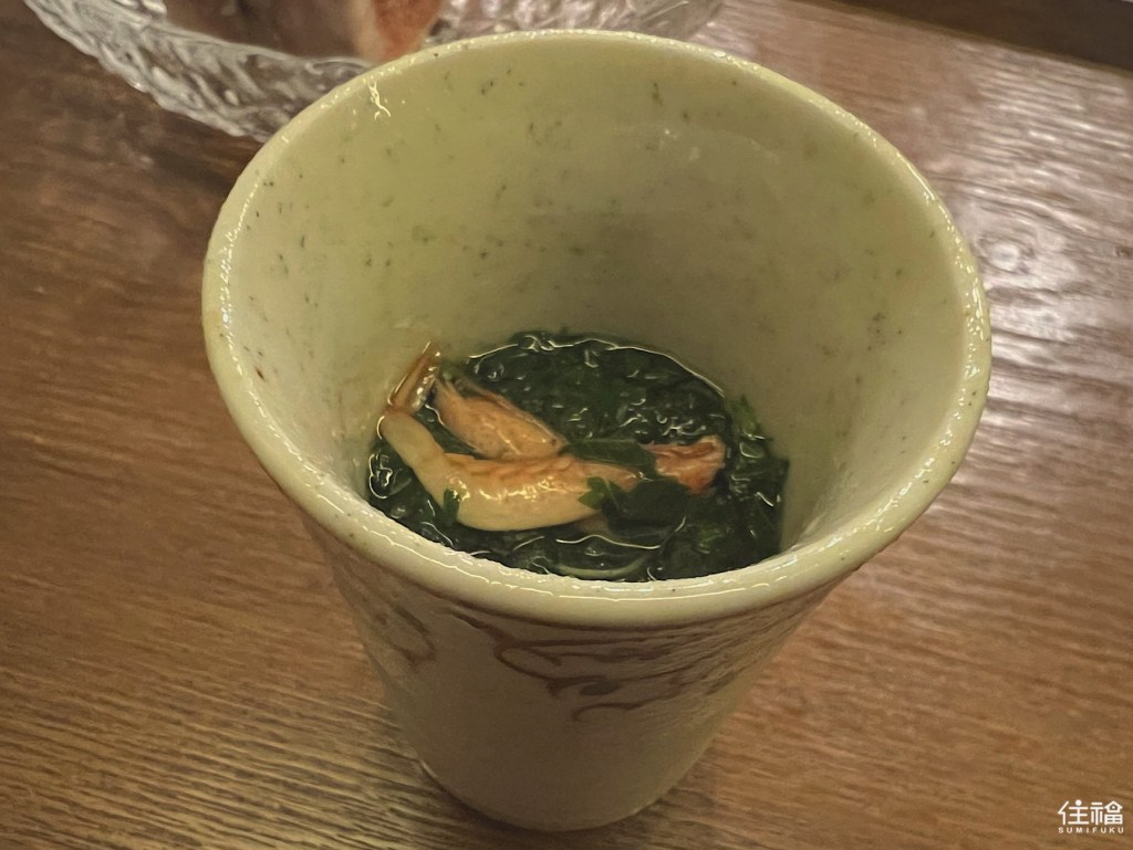 Before making the final selection, Mr. Yamakoshi let us know that the King’s Vegetable (モロヘイヤ) would have a slight bitterness. The best way to enjoy this small vegetable dish was by drinking it. Although it was bitter there was an element of sweetness too. What stood out most however was the contrast of textures between the crunchy shrimp and soft vegetables.