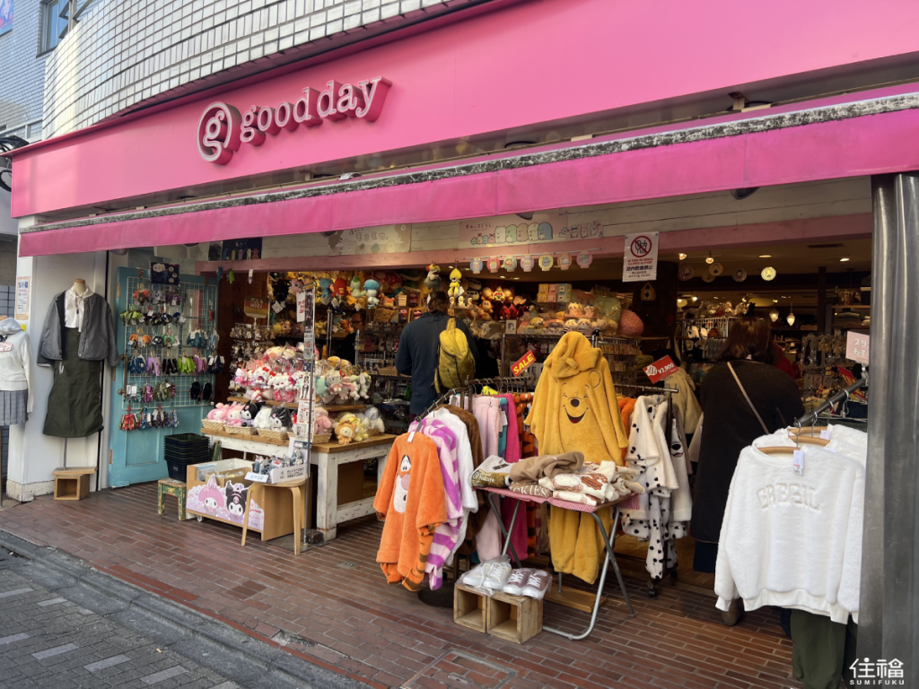 Located in the middle of the street is the shop Good Day. From character goods to cute casual clothing, Good Day is one of the best shops to browse in and get some inspiration from.