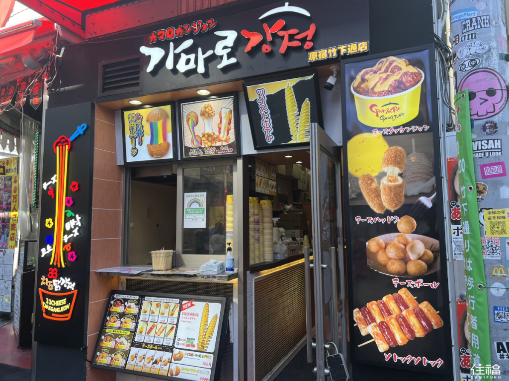 Harajuku is not only famous for fashion but also its wonderful and colourful food. At Gamaro GangJung, located halfway down the main street, you can try popular Korean street food such as corn dogs and the viral sensation which is rainbow-colored 10 yen cheese coin.