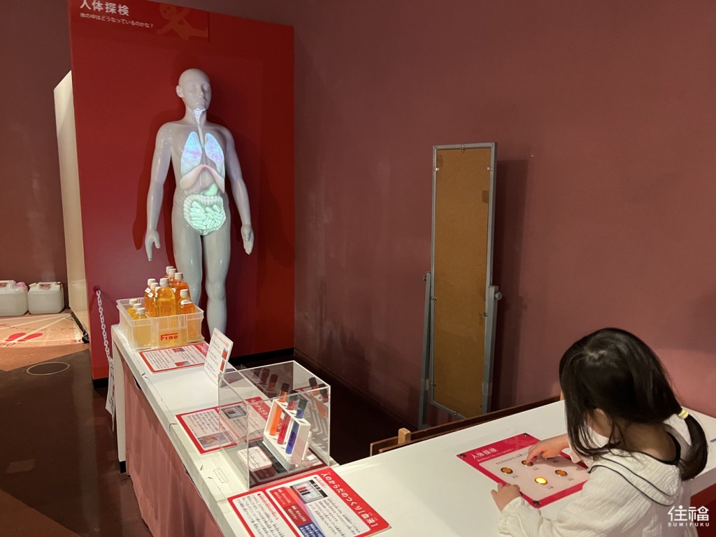 身體屋(からだの部屋)是小編覺得其中一個很好玩的展示區。展示的裝置如人體骨骼的運作觀察、反射神經實驗等等,都很適合小朋友體驗。
