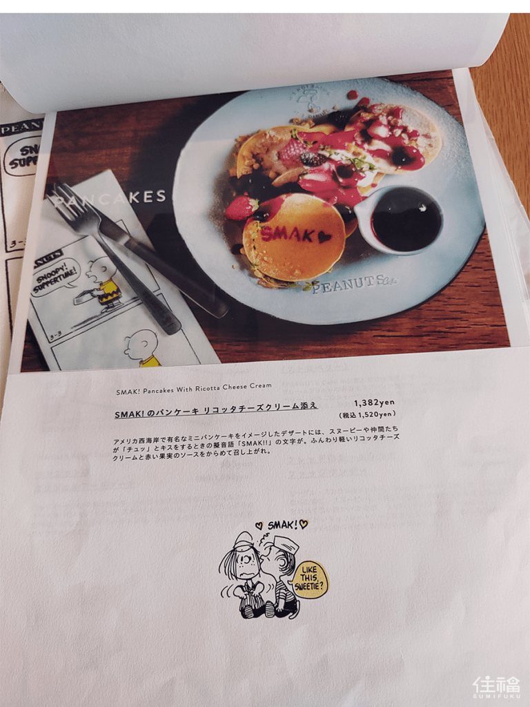 There is a solid selection of food and drinks to choose from including main dishes and desserts. For those wanting to try something sweet, the Snoopy and Charlie Brown shaped pancakes are highly recommended whilst the Spicy Chicken and Fried Egg Clubhouse Toast is good if you fancy something savory. Special drinks including a Popcorn Tea au Lait can also be found on the menu.