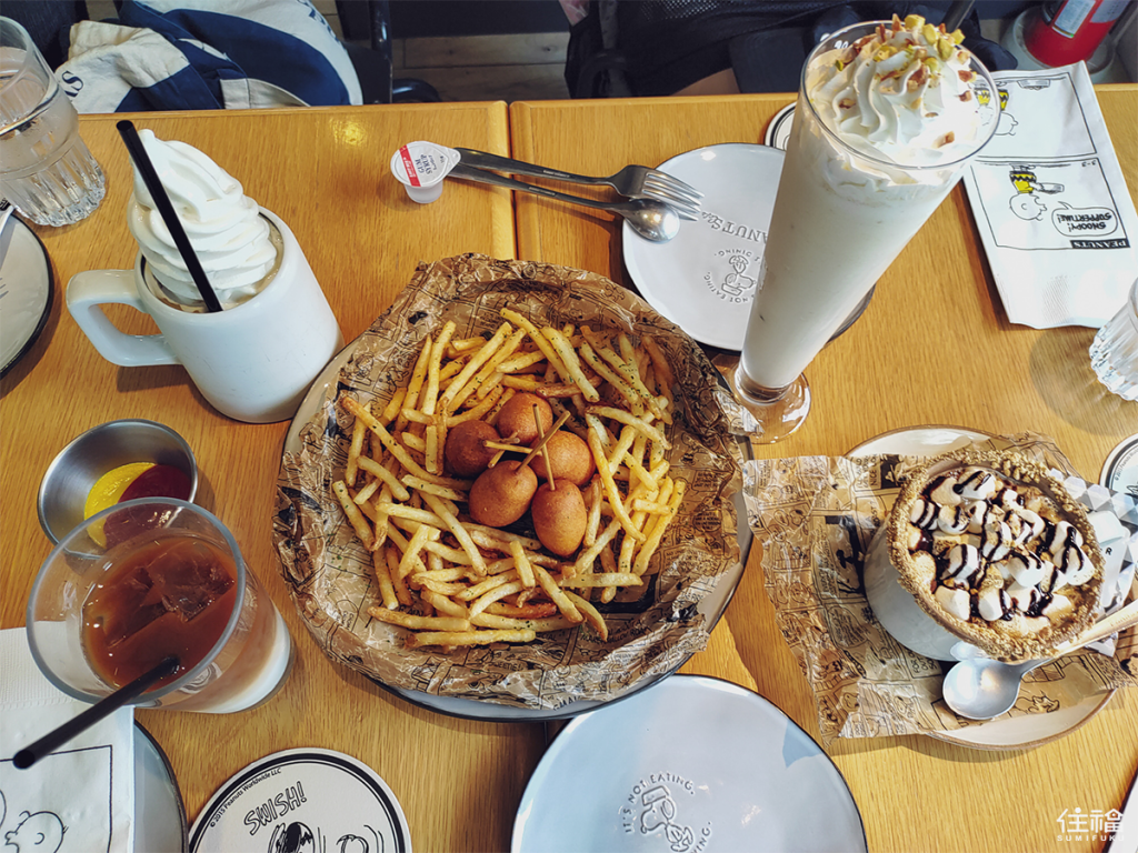 In terms of food offerings, there is a good choice of healthy foods including salads and pastas. For desserts, you can choose between the pancakes, churros, or a fruit cake. Each dish conveys the Snoopy theme more subtly and thus looks more trendy and minimalistic in comparison to dishes served at other character cafes, meaning this particular cafe is better suited to slightly older fans.