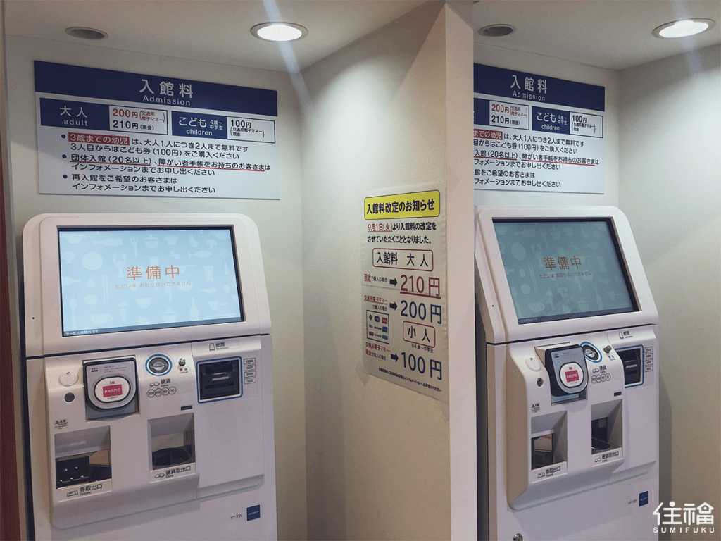 東武鐵道博物館票價相當經濟實惠,大人只要日幣210,如果用交通卡Pasmo或西瓜卡(suica)購票的話,優惠價只要日幣200,4歲以上小孩也只需要一枚100円硬幣就能入場。