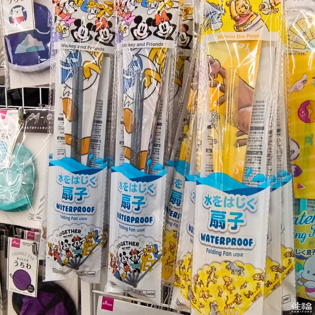 Daiso even sells plastic, waterproof fans that are ideal for poolside or beach use. They are durable and amazingly easy to clean, not to mention the kids will love the assorted designs available including Disney, Sanrio, and Winnie the Pooh characters.