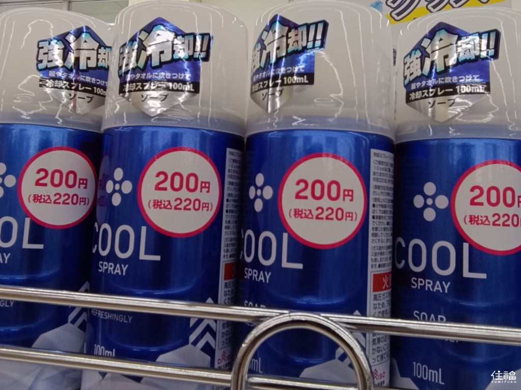 There are several options for cooling sprays, and most are priced at 220 yen per can.