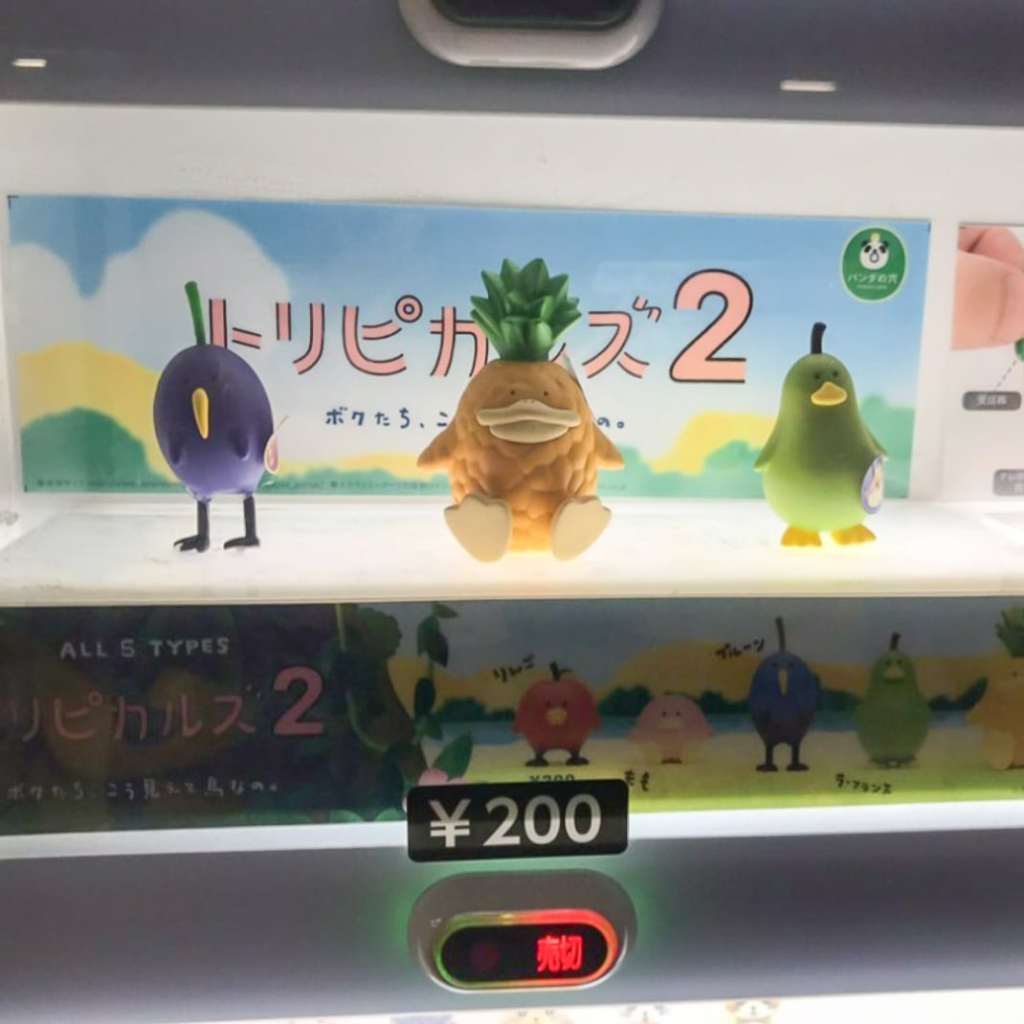 意外的在路邊看到賣「熱帶水果鳥」的自動販賣機,一般公仔都是在轉蛋機販售的,覺得很新奇,便買了一隻。回家發現真的長得很可愛,回頭再去買的時候,已經售完了😅