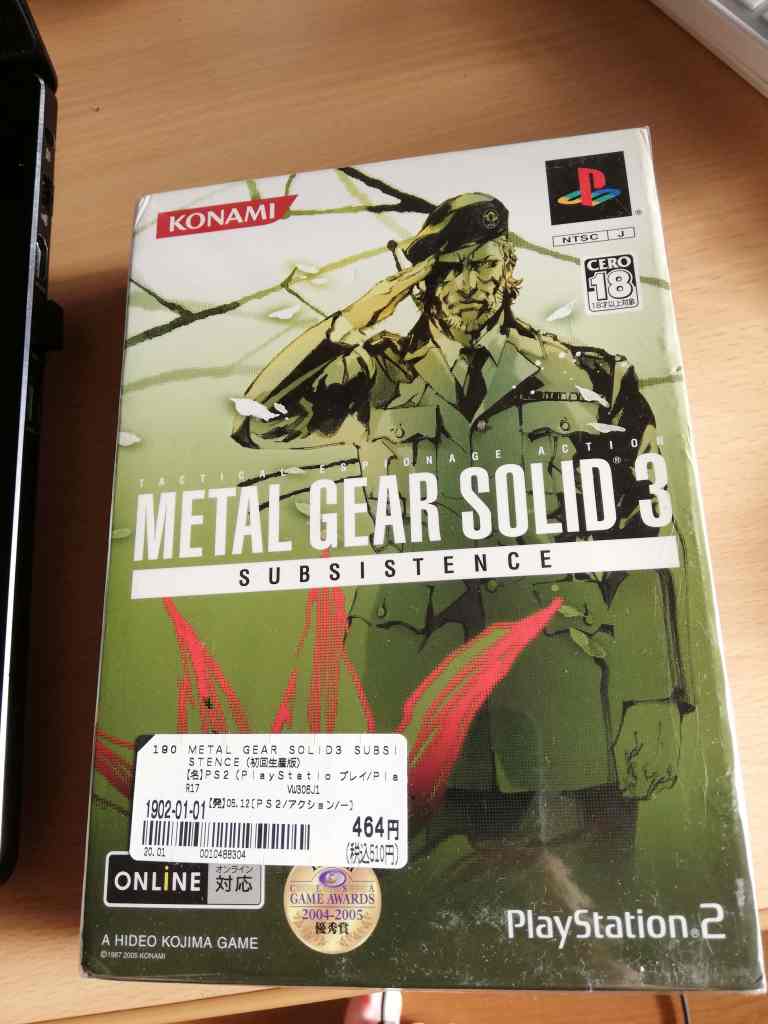 For instance, Metal Gear Solid 3: Subsistence can go for upwards of ¥6,000 (USD ~$60), but at a tiny shop in a small neighborhood in Setagaya, I found a copy for ¥510, including tax.