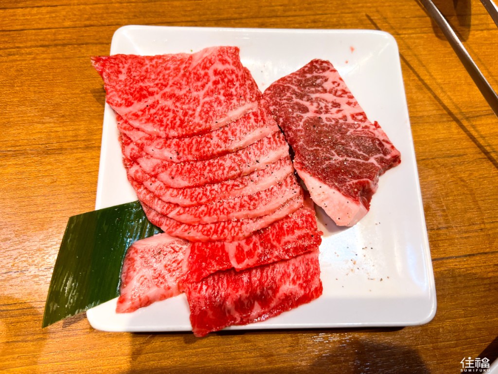 但日本的肉品分類方式是用肉的部位做區分,常見的有油質豐富的牛五花カルビ、肉質偏軟的橫隔膜ハラミ、油質偏少帶嚼勁的ロース、牛舌タン等……